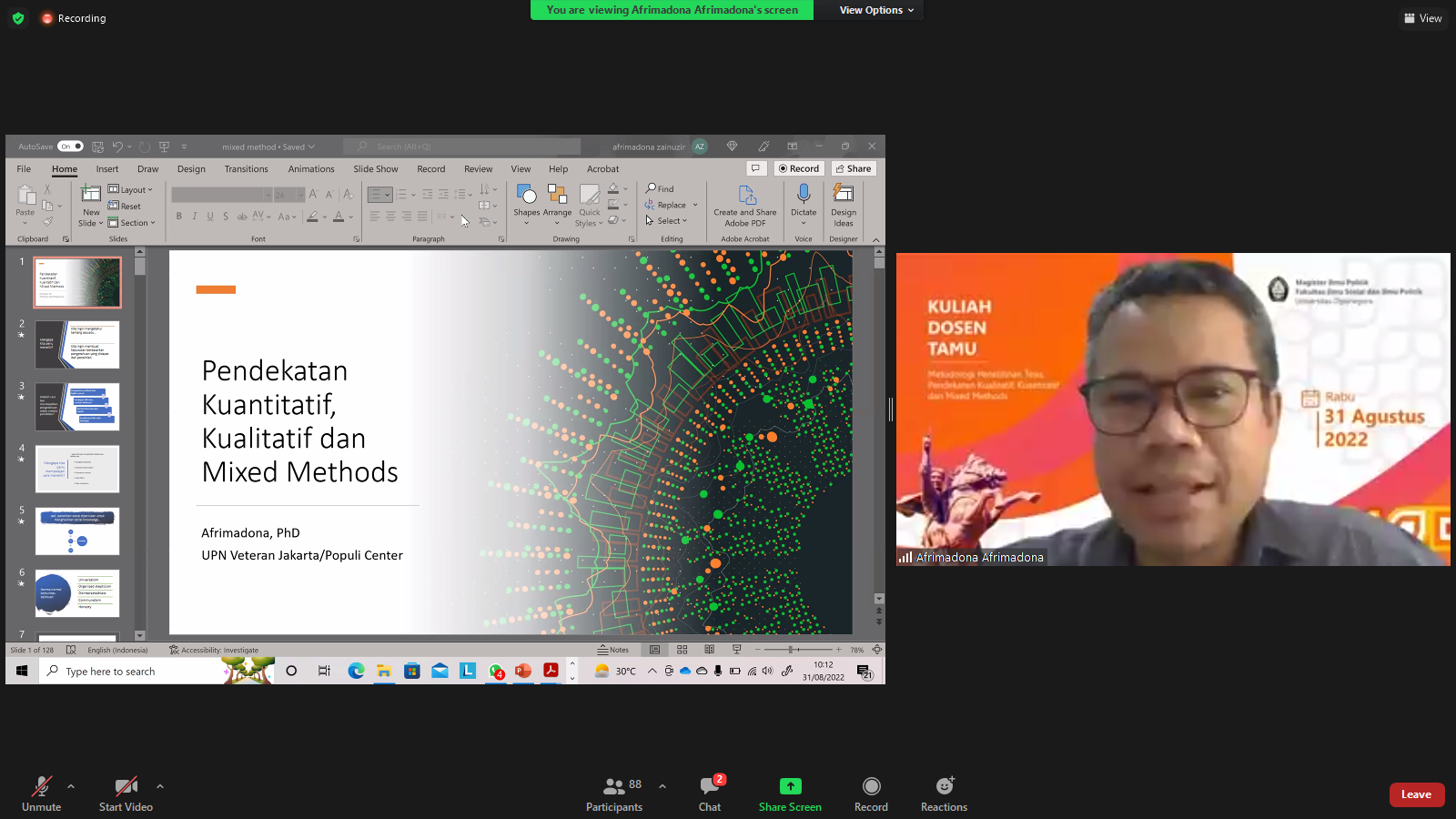 Semarang (31/08) – Guest Lecturer of Master of Political Science Faculty of Social Science and Political Science, Universitas Diponegoro brought the theme of Thesis Research