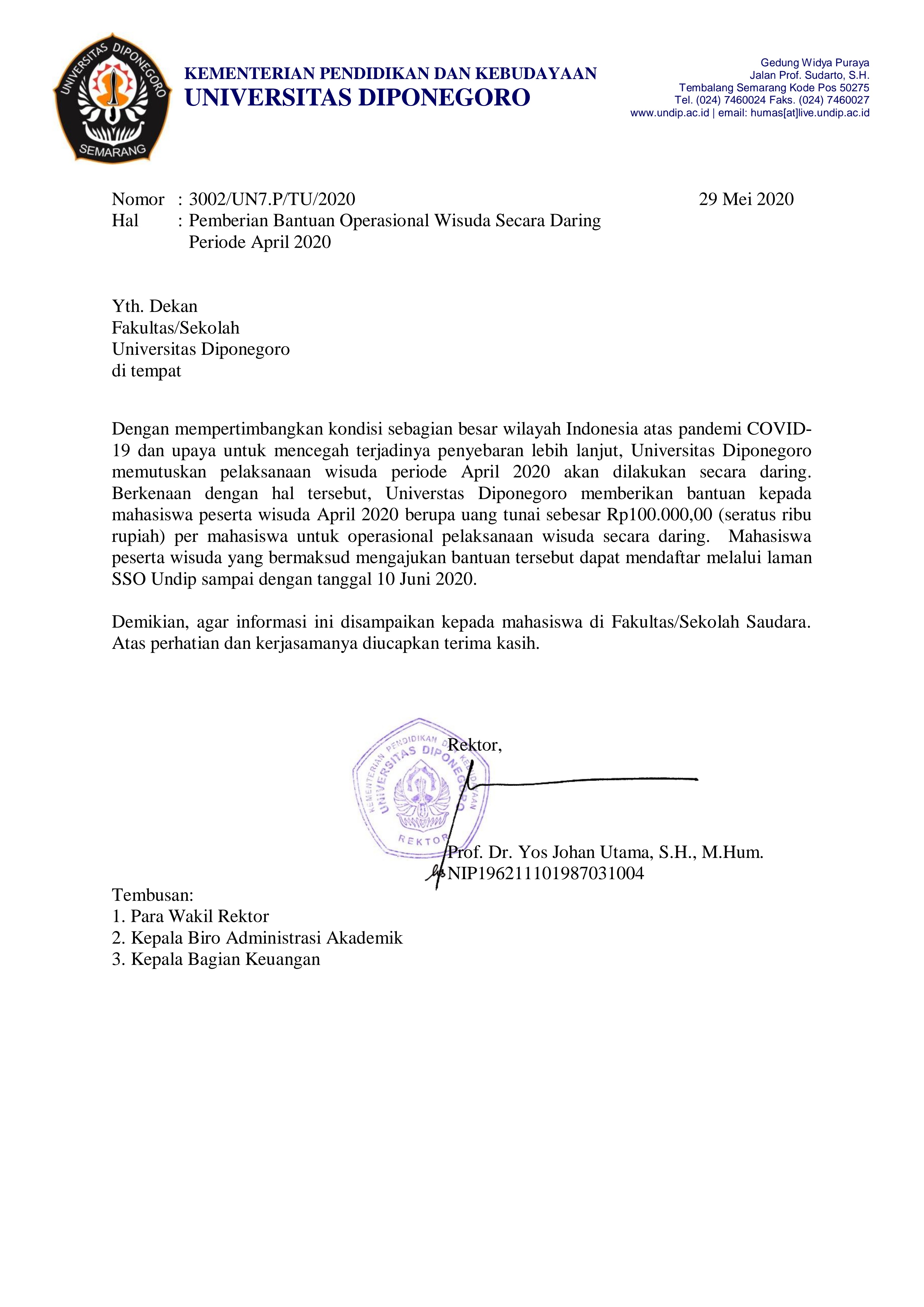 Pemberian Bantuan Operasional Wisuda Secara Daring Periode April 2020